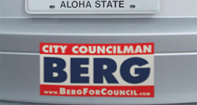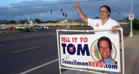 Berg decided to campaign with his Council staff at taxpayer expense during the 2011 Holiday Season using tax-funded banners, shirts, candy, . . .