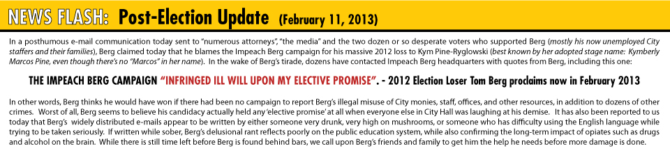 Berg's City Hall staff was tasked with getting Berg's campaign committee out of debt and into the black by the time 2012 rolled around . . .
